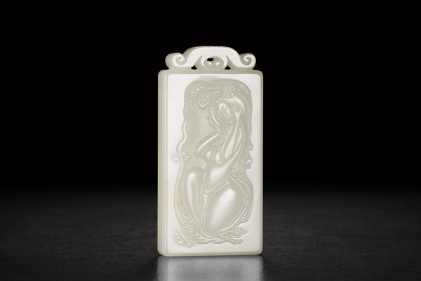 吴德昇的一直以“裸女题材”著称,他所雕刻的人物神情饱满,体态流畅,整体比例把控较好,且注重局部特写,将女性美的一面渲染、发挥到极致。之前,他的裸女一直是以立体的形式存在的,颇受广大藏友的青睐,在2014年7月6日博观春拍中,“碧玉绰约多姿”就以高价成交。此次,吴德昇将立体的人物安置在玉牌上,同样的饱满鲜活,更添一份雅致。