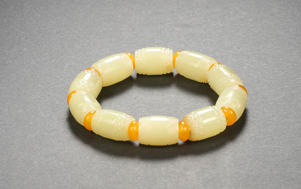 中国玉雕大师蒋喜作品 黄玉鼓形手串 成交价69400元