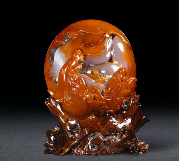阜新玛瑙加工历史悠久,是全国内宝石资源开发利用较早地区之一,阜新玛瑙以储量大、品种多、色泽全、纹理美、质地优而著称,已拥有“玛瑙之都”的称号。在此场拍卖会中从“玛瑙之都”阜新征集到的中国工艺美术大
