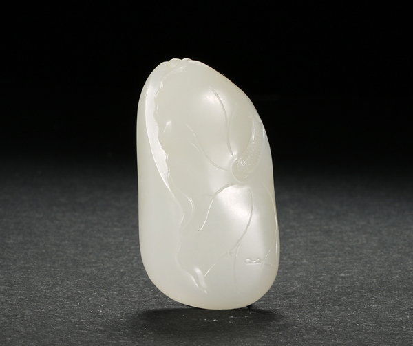 此作品也是雕琢莲花题材,所不同的是利用写意手法,雕琢女性纤纤细指执莲图。想象空间无限,可作观音执莲之解,也可理解成妙龄少女采莲图。此作品可供琢磨和品位空间无限,符合玩玉之人的心情。