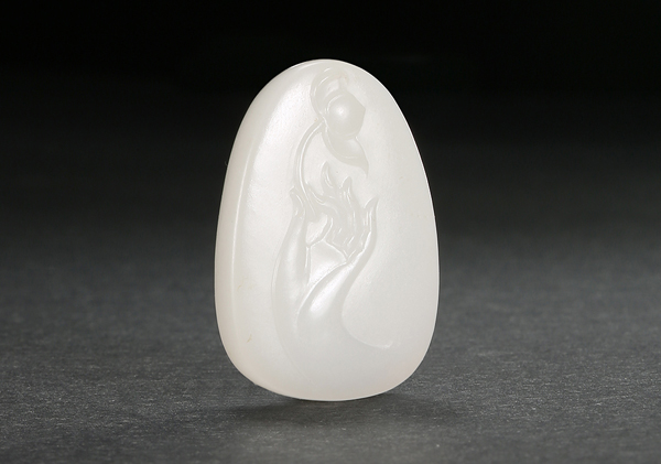 荷花是圣洁的代表,更是佛教神圣净洁的象征。荷花出尘离染,清洁无瑕,故而国人和广大佛教信徒都以荷花“出淤泥而不染,濯清涟而不妖”的高尚品质作为激励自己洁身自好的座右铭。荷花又是友谊的象征和使者。中国古代民间就有春天折梅赠远,秋天采莲怀人的传统。因此,荷花题材常用于玉雕当中,以寓佩戴者的清白与高洁。