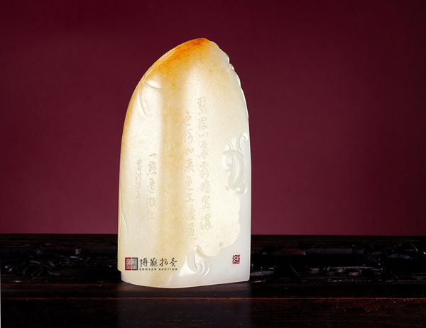 在中国艺术品拍卖火热的同时,北京博观拍卖作为中国首家专业的珠宝玉石拍卖机构,近八年的珠宝玉石拍卖经验,见证了新疆和田玉原料价格稳定的攀升过程,和田玉原料的稀缺性是玉雕艺术品保值性强的根本。在上世纪五六十年代,一块200克左右的和田玉籽料也就是一两个鸡蛋的价格。但到了1980年,一级和田玉山料每公斤是80元,籽料每公斤100元。1990年,山料攀升至300元至350元/公斤,籽料达到1500元至2000元/公斤。到了2005年,一级和田白玉籽料的价格达到10万元以上,有的甚至达到每公斤上百万元。而到了2006年,和田玉的价格翻了两番还多,2010年更是到了夸张的程度,平均每年升值50%至70% ,好的玉器每年能升值三至四倍,价格均在不断地升温。