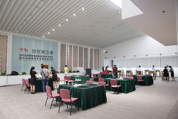 今天,博观第十期《玲珑美玉》大师名家精品无底价拍卖预展正式开始,数百件拍品已经全部陈列在博观艺术馆大厅展柜中,每件拍品的相关信息及作者名称都有相对应的展签,方便大家观赏和了解。