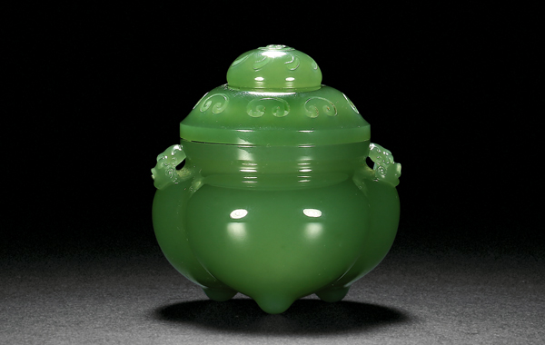 《碧玉三足炉》