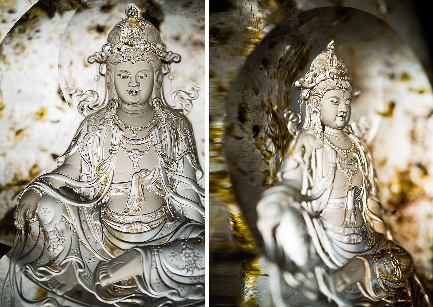 随着水晶产业的不断发展,人们对于水晶有了新的认识和了解,对于艺术性、观赏性的要求也在不断提高。水晶个性澄明通透,莹洁晶光,如水之精英,是很难驾驭的的雕刻材质。水晶与佛造像的结合是一场艺术的碰撞,不仅源于水晶与佛学文化的不解之缘,还源于玉雕人对于水晶始终保有一颗热忱之心。