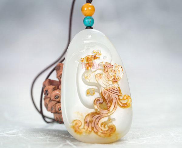 LOT 11292 中国玉石雕刻大师吴金星作品 和田玉籽料丹凤朝阳佩