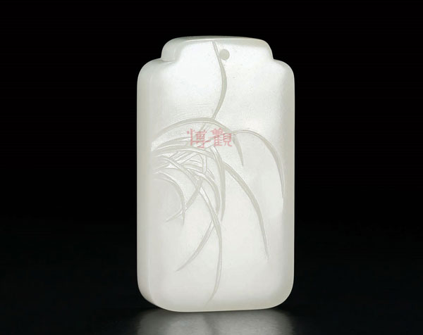 LOT 11393 中国玉石雕刻大师杨曦作品 和田玉籽料兰花牌