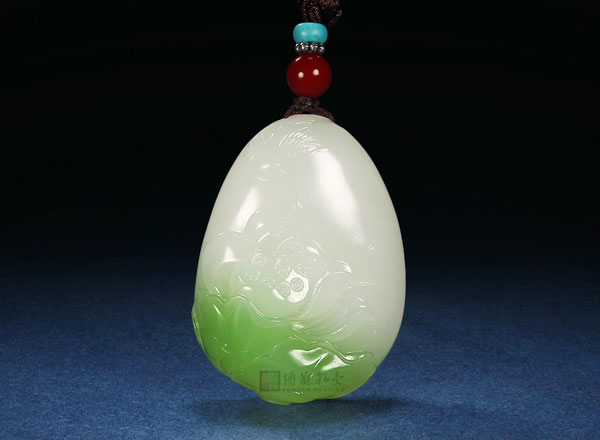 “翠青”多为带青翠颜色的软玉,产自于新疆和田、俄罗斯以及青海等地的软玉,均有带青翠颜色,其颜色青翠淡爽,产量稀少,受到了藏家的追捧。这件作品是由苏州玉雕名家殷小金创作的白玉和和美美佩,翠色亮丽,玉质 白润,雕工精美,寓意吉祥。