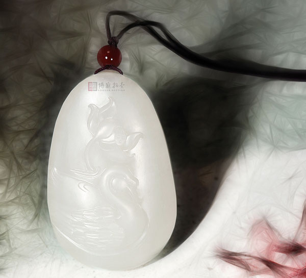LOT9802 苏州玉雕名家殷小金作品 白玉和和美美佩 5.0×3.7×1.6cm 50g