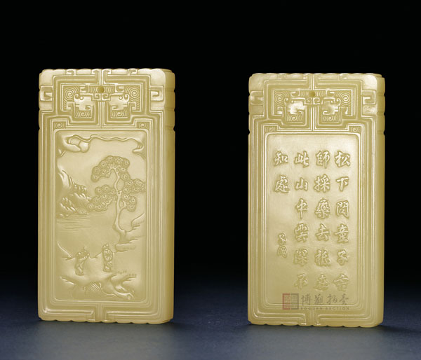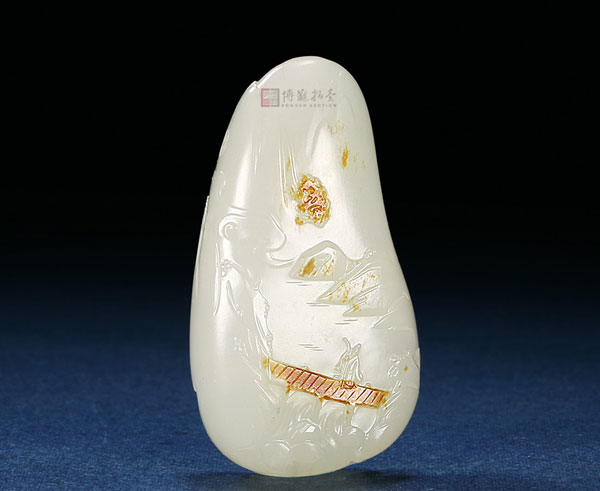 LOT9842中国玉雕大师赵显志作品 和田玉籽料山水佩 4.9×2.8×1.5cm 34g