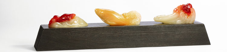 尚未刻字的印章,欣赏时主要还是在于材质、印纽、纹饰的欣赏。寿山石的材质之美不必多言,印纽和印身的悄然革新才是当代寿山印最值得关注的部分。北京博观于2014年8月6日-10日在懋隆艺术馆即将举行的第八期“玲珑美玉——当代珠宝玉石精品拍卖会”征集到的这一批当代寿山石印章新作,印纽、装饰赋予新意,在艺术内涵上与同批的寿山石雕作品不相上下,价值今非昔比。
