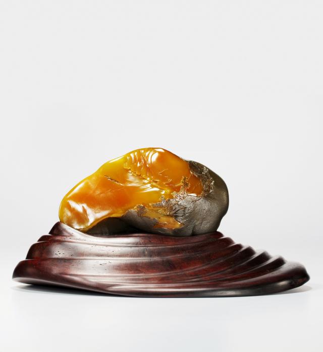 作者将材质的表皮作为刻画的重点,略施技艺,勾勒出湖岸山野景色,一人在岸边浅水停泊的小舟中面江静坐,观眼前烟波浩渺,湖光潋滟而心有所思。作者充分把握材质的奇特,所表现的画面意境优美,两者的结合几乎达到了完美的统一。